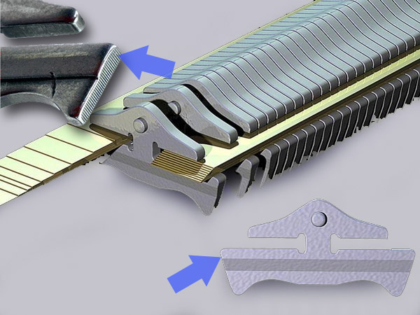 Рекомендация эта связана с тем, что при износе рабочей поверхности "протектора" сегментов или при растяжении стягивающих лент (см. внизу) как только датчиками отмечается проскальзывание ремня по конусам, компьютер через соленоиды увеличивает давление на конуса. И так - до максимума, что кратно увеличивает разрывающую нагрузку на ленты ремня. При максимальном давлении ленты не только растягиваются, что приводит к зазорам между сегментами и их наклоне к нормали конусов, но и возникает усталость металла ленты. Максимальное давление еще более опасно для подшипников. |
