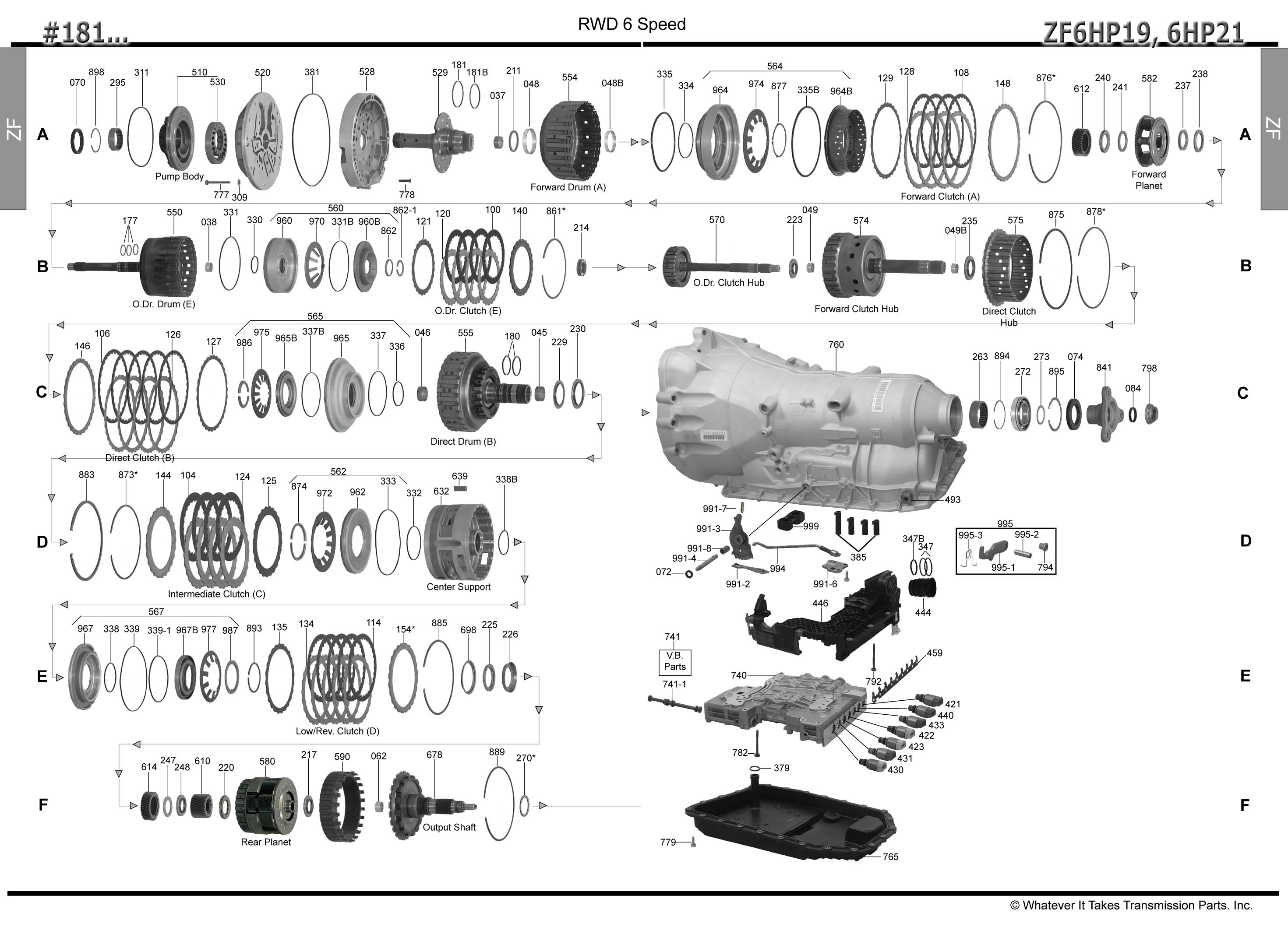 | Барабан сцепления директ (B), Direct (B) Drum ZF6HP19A/ZF6HP21X (подборка по 10 цифрам с АКПП) 2000-Up | 181555B |