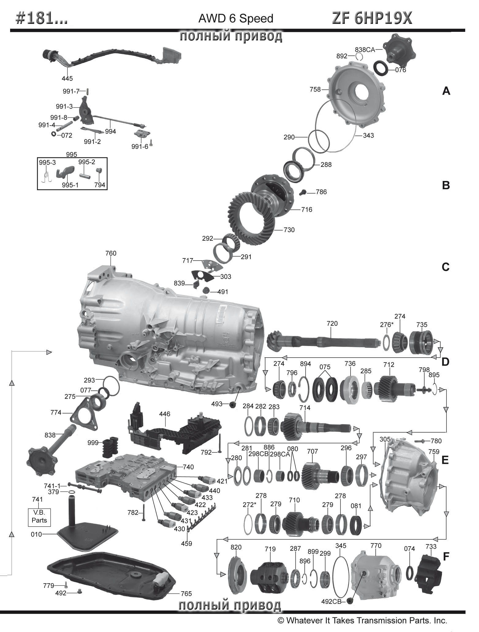 | Комплект Прокладок и Сальников, ZF6HP19/ 6HP21, BMW, 04-Up, (Ремкомплект\ Оверол кит\ Overhaul Kit) | 181002B |