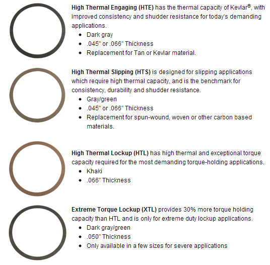 Новые гидротрансформаторы 6+ ступенчатых авто имеют два режима работы: 1. Спокойный. Когда педаль газа разгоняет авто примерно в первой трети своего хода. Тогда нагружена в основном старая добрая пара турбин, использующая вихрь масла, а фрикционы ГДТ подключаются в момент выравнивания скоростей (ок. 60 км\ч) вращения обоих валов быстрым сцеплением. 2. Агрессивный/Спортивный режим. Когда педаль газа нажата в последней трети - у пола. Тогда в дело подключаются фрикционы блокировки ГДТ, отодвигая в сторону гидравлические турбины и скользя, передают колесам крутящий момент ревущего двигателя. Представьте площадь этих "проскальзывающих" фрикционов ГДТ и силу тяги двигателя! Материалы для этого инновационного графитового (или кевларового) фрикциона много раз модифицировались (щадя масло и гидроблок) и сейчас имеются множество их типов: HTE, HTS, HTL, XTL... (смотри слева таблицу) для разного крутящего момента, разных настроек компьютера и под разного водителя… Фрикцион блокировки обычно съедается первым в большинстве типов гидротрансформаторов. |